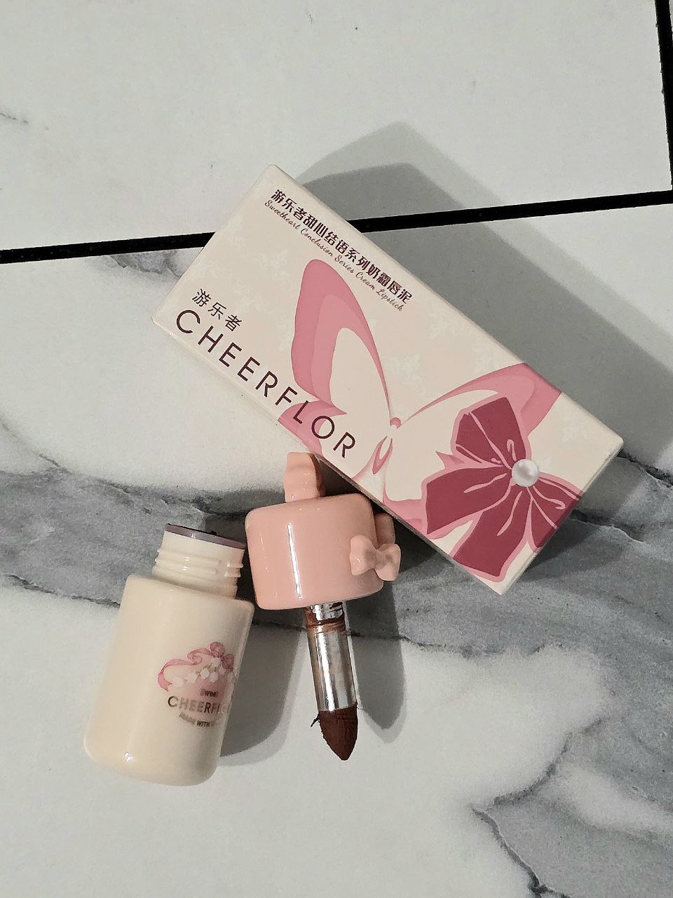Я попробовала продукт для губ – Cheerflor Bow Velvet Cream Lip Mousse и сравнила с текстурой и качеством схожего продукта у Flower Knows (FlowerKnows Chocolate Wonder-Shop Cloud Lip Cream). Оба относятся к категории lipmud – матовых вязких помад-тинтов, создающих особенный блюр-эффект на губах. Сложилось субъективное впечатление, что у второго бренда более приятная и легкая текстура, чем у первого. Chocolate Cloud не сушит губы и оставляет стойкий след на губах после стирания, чего не сказать о Velvet Cream. Конечно, бренд по одному продукту судить трудно, отзывы смешанные (но в целом положительные), однако обозреватели солидарны в том, что Cheerflor не хватает присутствия в социальных сетях, хотя собственная идентичность есть. Бренд вдохновляется викторианской эпохой, живописью, стилями рококо и coquette. На культовых продуктах цветочные орнаменты, херувимы и ангелы, золотые рамки и тиснение.