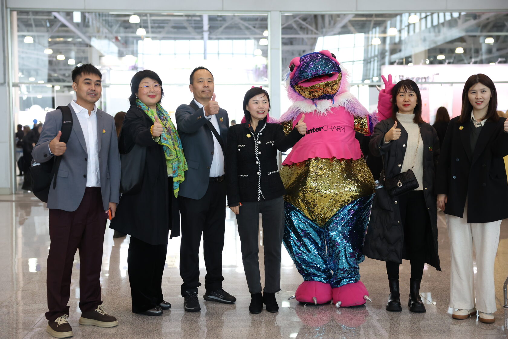 - Фото с маскотом InterCHARM — Бьютизавром