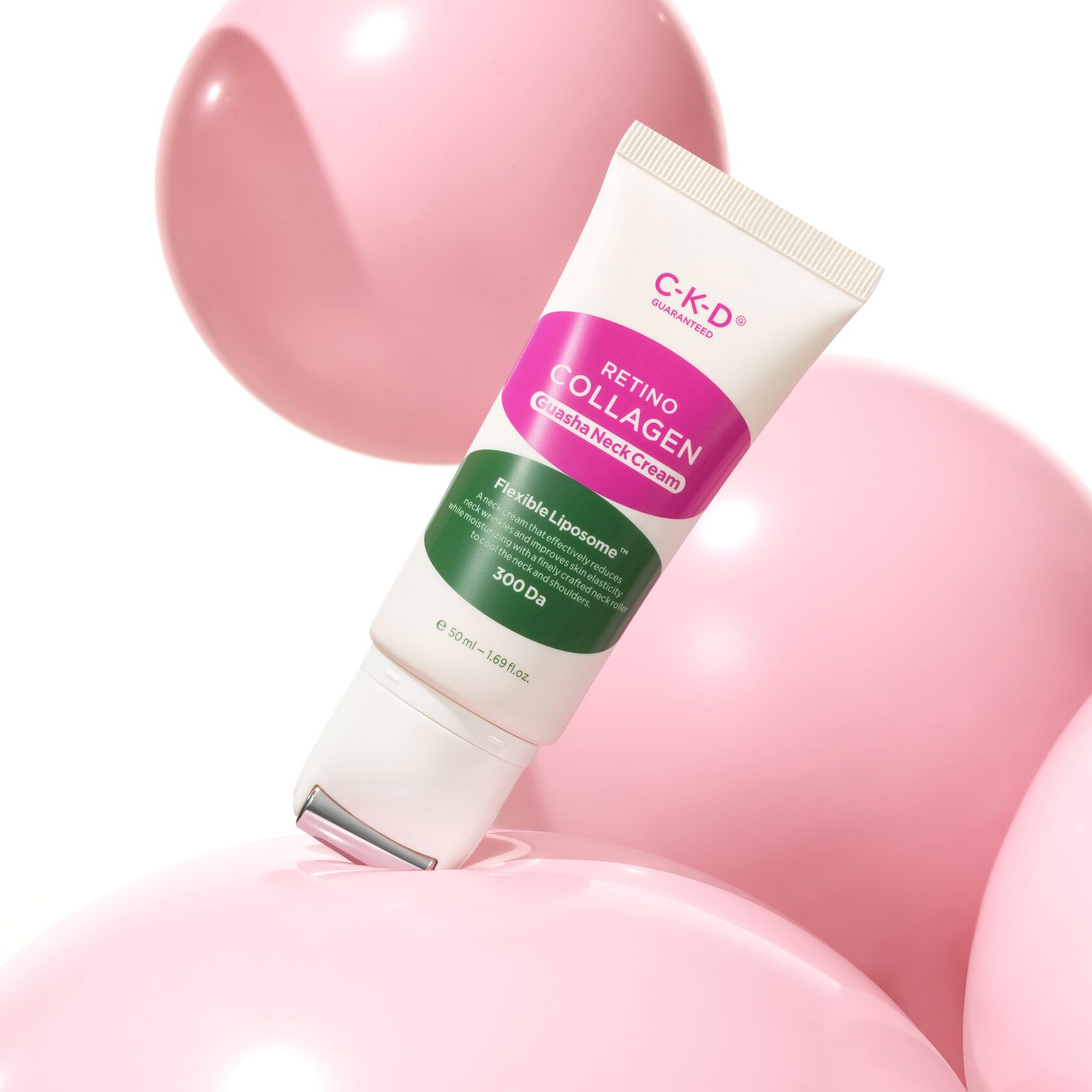Retino Collagen Small Molecule 300 Guasha Neck Cream — первый крем для шеи с интегрированным роликом гуаша из медицинской стали.