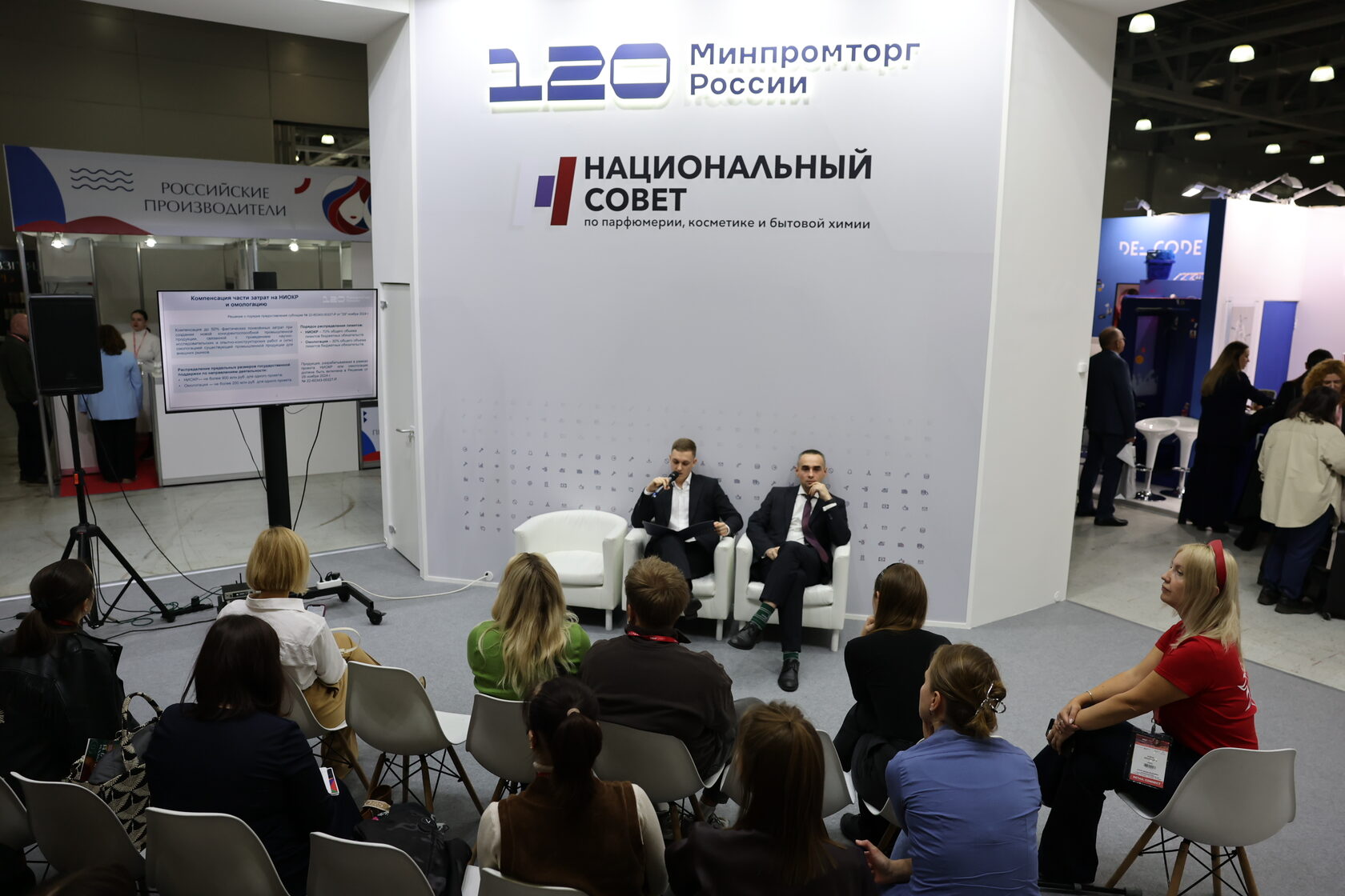 На стенде Минпромторга России и АО «Национальный совет по парфюмерии, косметике и бытовой химии» прошли круглые столы и деловые сессии, посвящённые вопросам поддержки российских производителей, развитию экспортного потенциала и особенностям маркировки продукции в условиях трансформации рынка.
