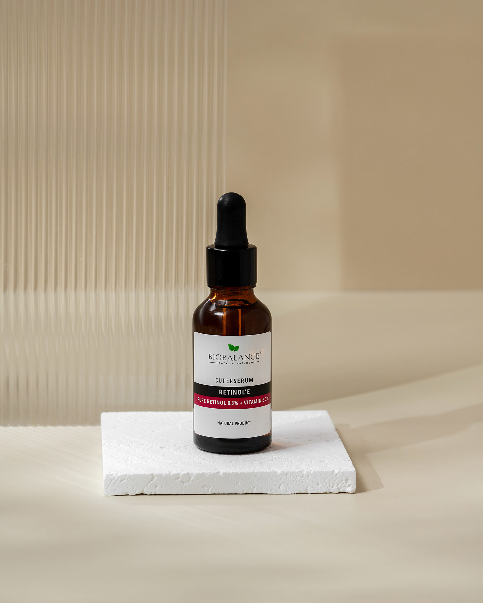 1. Сыворотка с ретинолом 0,3% и витамином Е 2%, BIOBALANCE – проверенное средство с многофункциональными активами для обновления кожи. Сыворотка стимулирует обновление клеток, активизирует выработку коллагена и эластина, сокращает выраженность морщин и пигментных пятен. Формула сочетает антивозрастной эффект с действием против несовершенств: она также борется с постакне, чёрными точками и воспалениями.